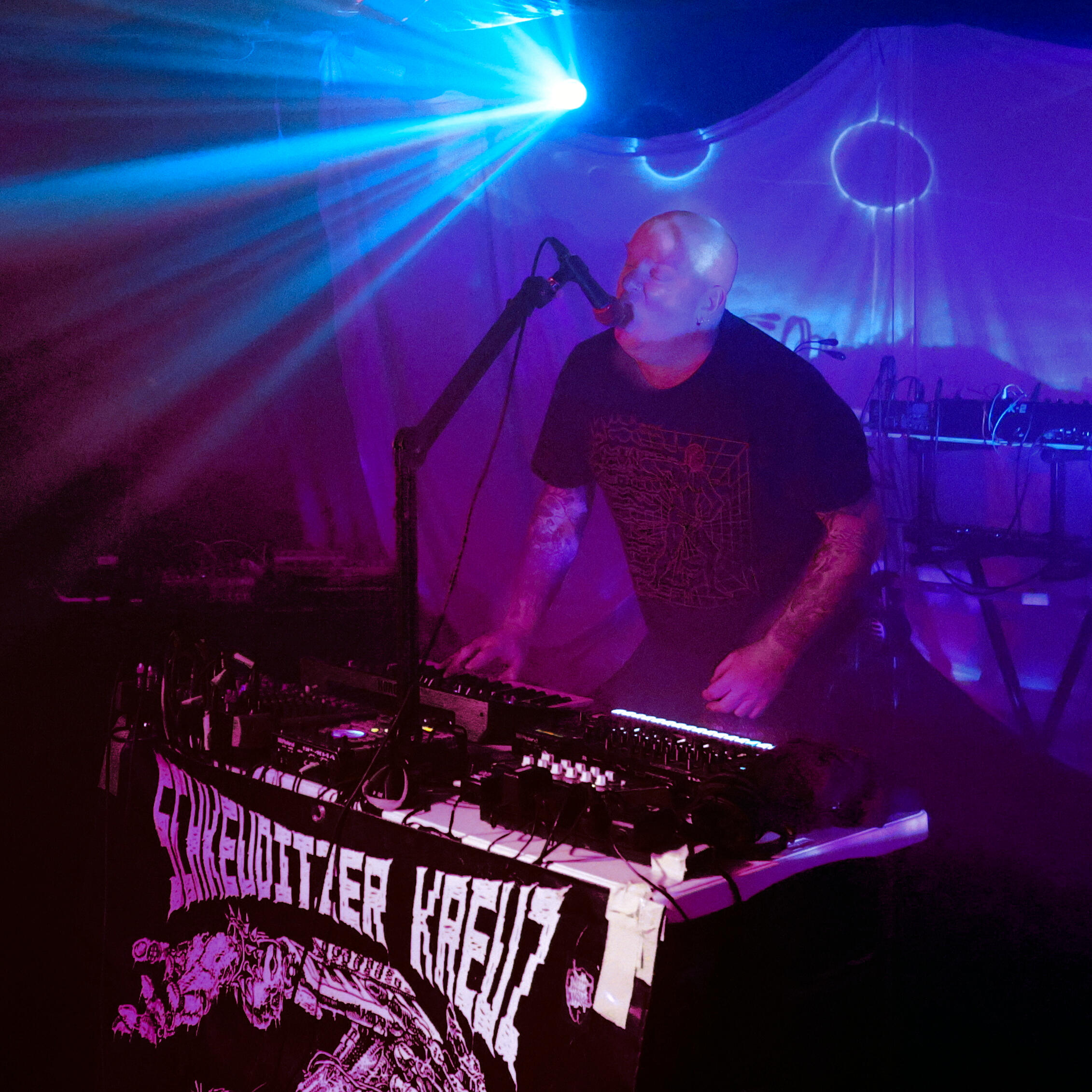 Since 2020, Schkeuditzer Kreuz has released two full-length studio albums: Isolated and Alone (2021) and No Life Left (2023), alongside a raft of singles, videos, EPs, split-releases, compilation tracks, and remix collaborations. As a live act, Schkeuditzer Kreuz remains in constant live demand worldwide: touring extensively across the UK and mainland Europe, Asia, Australia, and New Zealand, and recently touring Australia with pioneering UK industrial legends ATTRITION (Oct-Nov 2024) and US anarcho-breakcore outfit, DECIDE TODAY (Dec 2024-Jan 2025). Kieren has since become a touring live member of ATTRITION (Oct-Nov 2024), with ATTRITION / Schkeuditzer Kreuz tour dates together in 2025 including shows in Thailand, Hong Kong, and England. Critically acclaimed, Schkeuditzer Kreuz has received high praise from the likes of Louder Than War (UK), CVLT Nation (US), Sonic Seducer (Germany), Auxiliary Magazine (US), Side-Line (Belgium), Cave Dweller Music (US), ReGen Magazine (US) and untold others.Playing in bands for over 35 years, Kieren Hills began his journey into underground music in New Zealand, during the late 1980s, before relocating to Australia with riotous Wellington NZ punk rock group, S.M.U.T., in 1993. He turned up a few years later in Stuttgart, Germany’s Murder Disco X; followed by countless Sydney underground bands, including crust punk / d-beat merchants Vae Victis; hardcore legends Dark Horse; and deathrock / gothic punk outfit Death Church, to name a few.