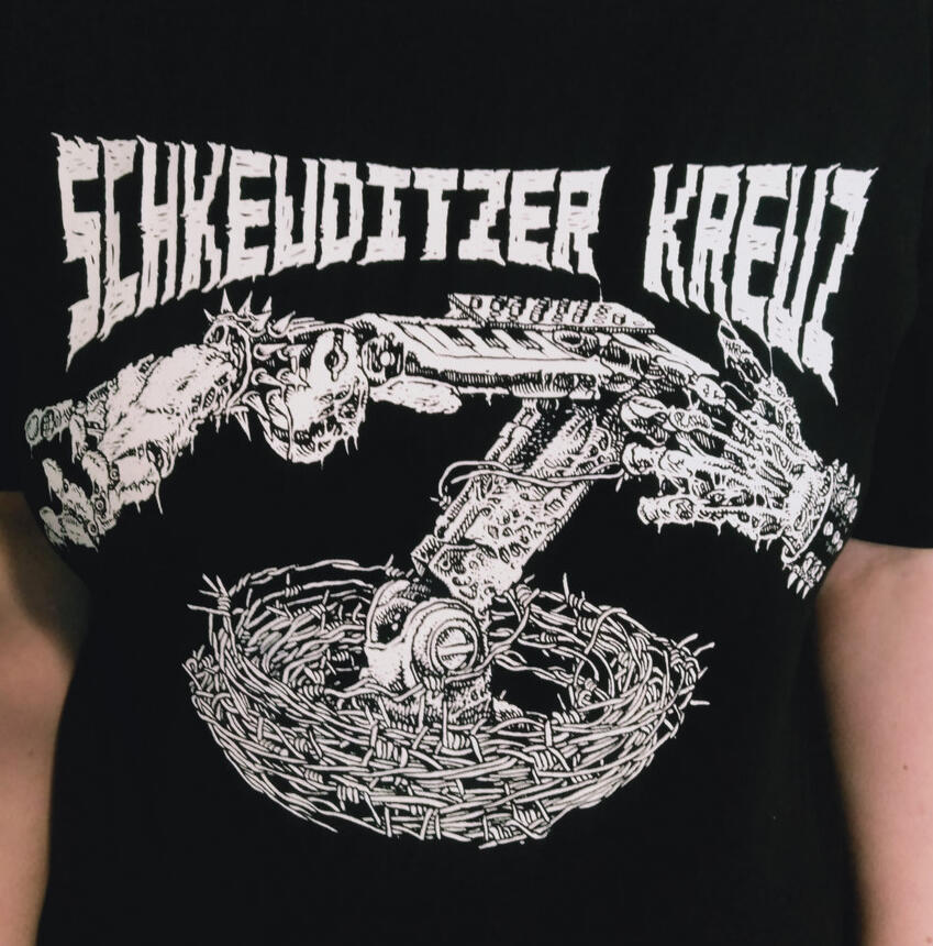 “…listening to the chaotic sounds of industrial synth crust // d-beat raw synth punk multi-machinist SCHKEUDITZER KREUZ perfectly captures the disgust and fear I felt watching the country descend into yet another Libs vs Cons debate… On “Second Life,” he samples soundbites from the dizzying and disorienting media bullshit that follows a mass shooting, chanting “Another one dead / and another one fucking dies”!”– CVLT Nation